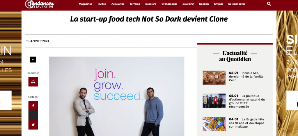 – Infonet : La start-up française Clone arrive en Espagne et aux Pays-Bas avec ses marques virtuelles dédiées aux restaurateurs janvier 8, 2024